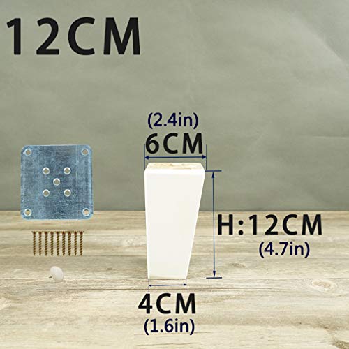 Sofa legs 4 pezzi Gambe di Divano in Legno Massello,Gambe per Mobili in Pino, Piedini per Tavolo Ricambio,Piedi per Tavolino,Piede per Cucina Divani Letto Poltrone,con Accessori,Bianco(12cm/4.7in)