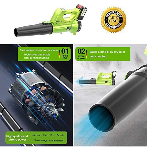 ★ ★ 【Libertà, flessibilità ed ecocompatibilità】 Ventilatore assiale con controllo della velocità per un facile utilizzo. ha una copertura dell'intero prato senza la restrizione di un cavo di alimentazione, per una migliore libertà e flessibilità, senza benzina, senza fumi.
