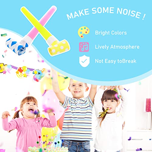 Materiali di qualità e sicuri: questi soffiatori colorati per compleanno sono realizzati principalmente in plastica, carta e alluminio di qualità, che sono sicuri, odori non irritanti quando li si utilizza, non si rompono o si strappano facilmente, abbastanza robusti per un uso prolungato durante la celebrazione.