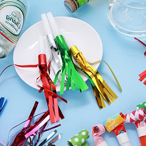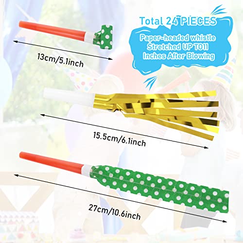 24 soffiatori per feste per bambini, per feste di compleanno, sport, feste di laurea, con frange metalliche, per bambini e adulti, per feste di compleanno, sport, feste di laurea
