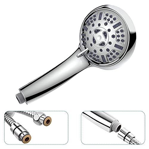 Soffione doccia di alta qualità con tubo. La stenza, il comfort e la sicurezza del set di soffione sono dalla piastra in ABS stente ai graffi, dalla superficie cromata e dal tubo doccia a prova di perdite da 1,75 m in acciaio inox. Gli ugelli in silicone migliorati del soffione della doccia ad alta pressione impediscono l'intasamento.