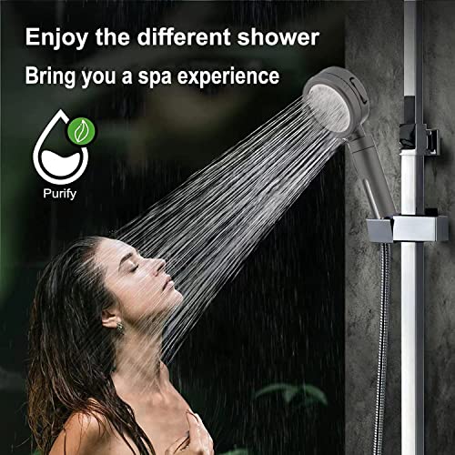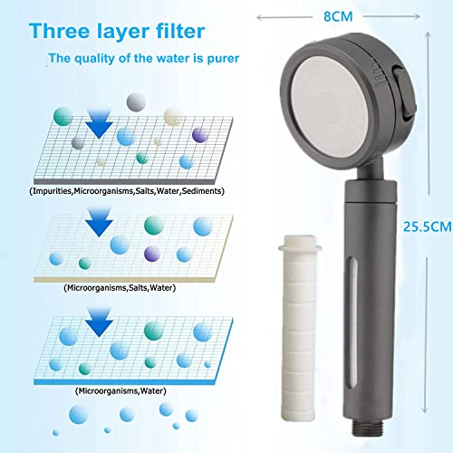 【3 pesante super forte filtro. più sano】 Il soffione contiene 2 cartucce filtranti in cotone PP, 3 volte che possono filtrare la fonte d'acqua, per ottenere molteplici effetti di purificazione dell'acqua, filtra impurità, ruggine, microrganismi, sedimenti e altre sostanze nocive, rimuovendo il cloro residuo, rendendo l'acqua più pura e nutrendo la pelle. Goditi una doccia pura e salutare a casa.
