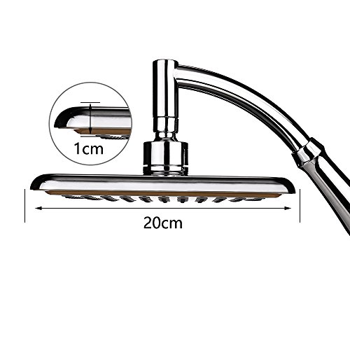 Soffione doccia ad alta pressione da 20,3 cm, risparmio acqua, giunto girevole, quadrato, con staffa di supporto del tubo doccia. Style 02