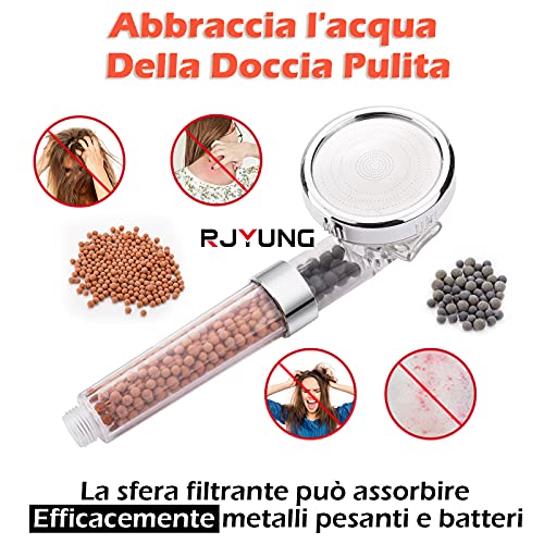 Soffione Doccia Anticalcare Alta Pressione - Universale 3 Mode Soffione per Doccia, Risparmio Idrico,Filtro e Sfera Minerale Sfere Anticalcare, Con 1.5m tubo soffione doccia