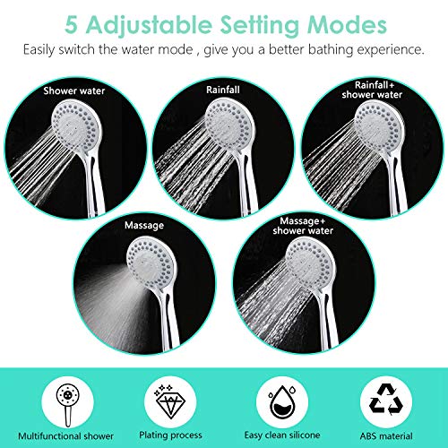 Soffione Doccia, Autkors Universale 5 Regolabile Funzioni Testa Doccia a Mano ad Alta Pressione, ABS Cromato Soffione con Ugello in Silicone Autopulente e Impugnatura Ergonomica