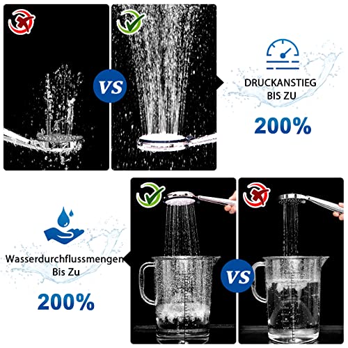 Materiale durevole: il soffione è realizzato in materiale ABS ecologico avanzato con superficie cromata, che porta una consistenza più forte e una forza sufficiente per isolare efficacemente il calore. La porta di installazione standard G1/2 è facile da installare e si adatta al 99% dei modelli di tubi flessibili.