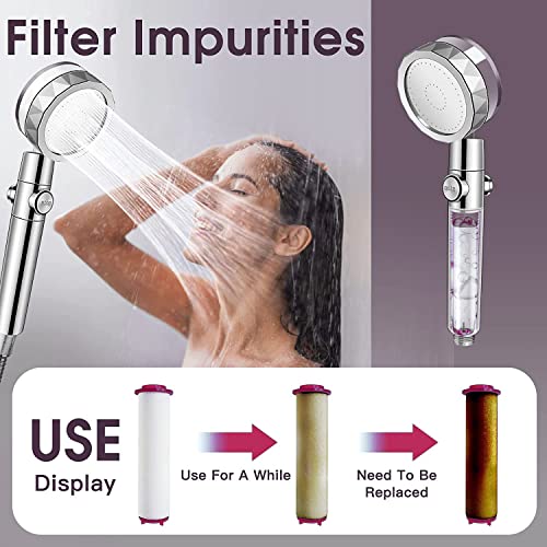 【Doccia con 3 elementi filtranti di ricambio】 Se il tuo vecchio pannello doccia ha accumulato del calcare, senti che i tuoi capelli e la tua pelle sono molto secchi, non c'è dubbio che hai bisogno di un soffione con funzione di filtraggio per migliorare la qualità dell'acqua per la doccia! Il soffione doccia filtrato con tripla funzione di filtrazione potenziata può addolcire efficacemente l'acqua dura in modo che tu possa goderti una doccia confortevole!