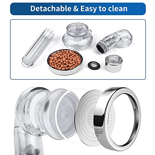 Soffione doccia ionico, Ronvie palmare ad alta pressione risparmio d'acqua 3 modalità di filtro doccia per acqua dura con pietra supplementare sostituibile