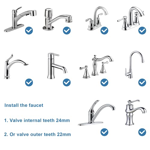 Nota: si prega di controllare le dimensioni del rubinetto prima dell'acquisto. Il kit è adatto per rubinetti con un diametro di 16-22 mm e rubinetti con un diametro della filettatura interna di 24 mm. Non è adatto per rubinetti quadrati e altri rubinetti irregolari.