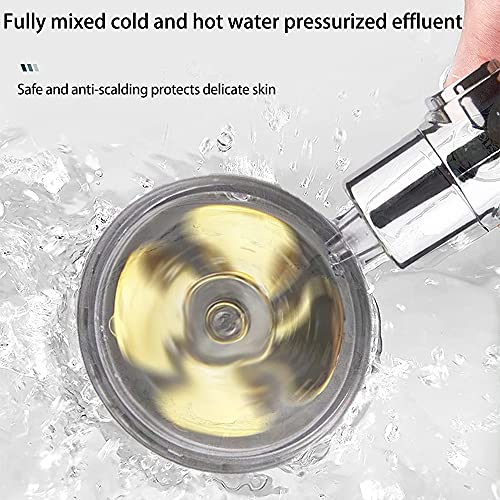 Soffione Doccia Portatile Ad Elica Ad Alta Pressione Con Filtro, Soffione Doccia Rotante a 360° Per Il Risparmio Idrico, Soffione Doccia Turbo Spa Con Ventola E Interruttore (Silver)