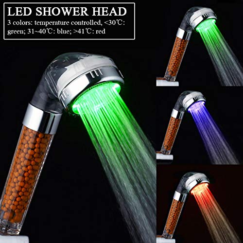 Soffione doccia a LED a risparmio idrico Soffione doccia a risparmio idrico con particelle anioniche per bagno con pelle secca(Self-change colorful)