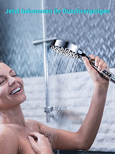 Soffione doccia alta pressione: il soffione doccia offre prestazioni eccellenti sia ad alta che a bassa pressione. L'alta pressione dell'aria produce una pioggia a cascata. I sottili getti d'acqua puliscono la pelle in profondità fino ai pori. È ideale per sciacquare rapidamente e accuratamente shampoo, gel doccia e balsami.