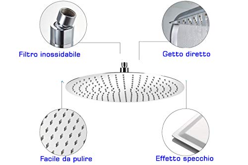 Dimensioni soffione: 20 dm cm circa - Dimensioni attacco: 2.5 cm circa - Peso: 490 gr circa