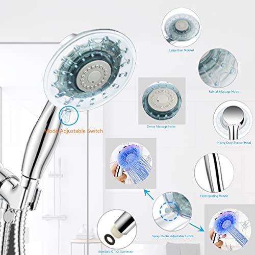 Soffione doccia a LED a temperatura controllata, grande pressione manuale ad alta pressione con 2 modalità di uscita dell'acqua, spray bagno spa doccia ugello, ABS + tecnologia cromata galvanica