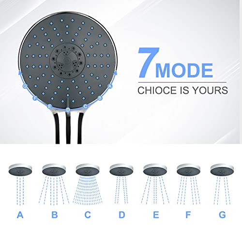 【 Upgrade anti-esplosione tubo da 1,5 m con 7 modalità di uscita dell'acqua: questo soffione doccia con tubo a risparmio idrico è dotato di 7 modalità di uscita dell'acqua, acqua forte, pioggia + acqua forte, pioggia leggera, pioggia + bolle, pioggia forte, pioggia leggera, ognuno può offrire un'esperienza di bagno speciale e alleviare la stanchezza e lo stress ogni giorno.