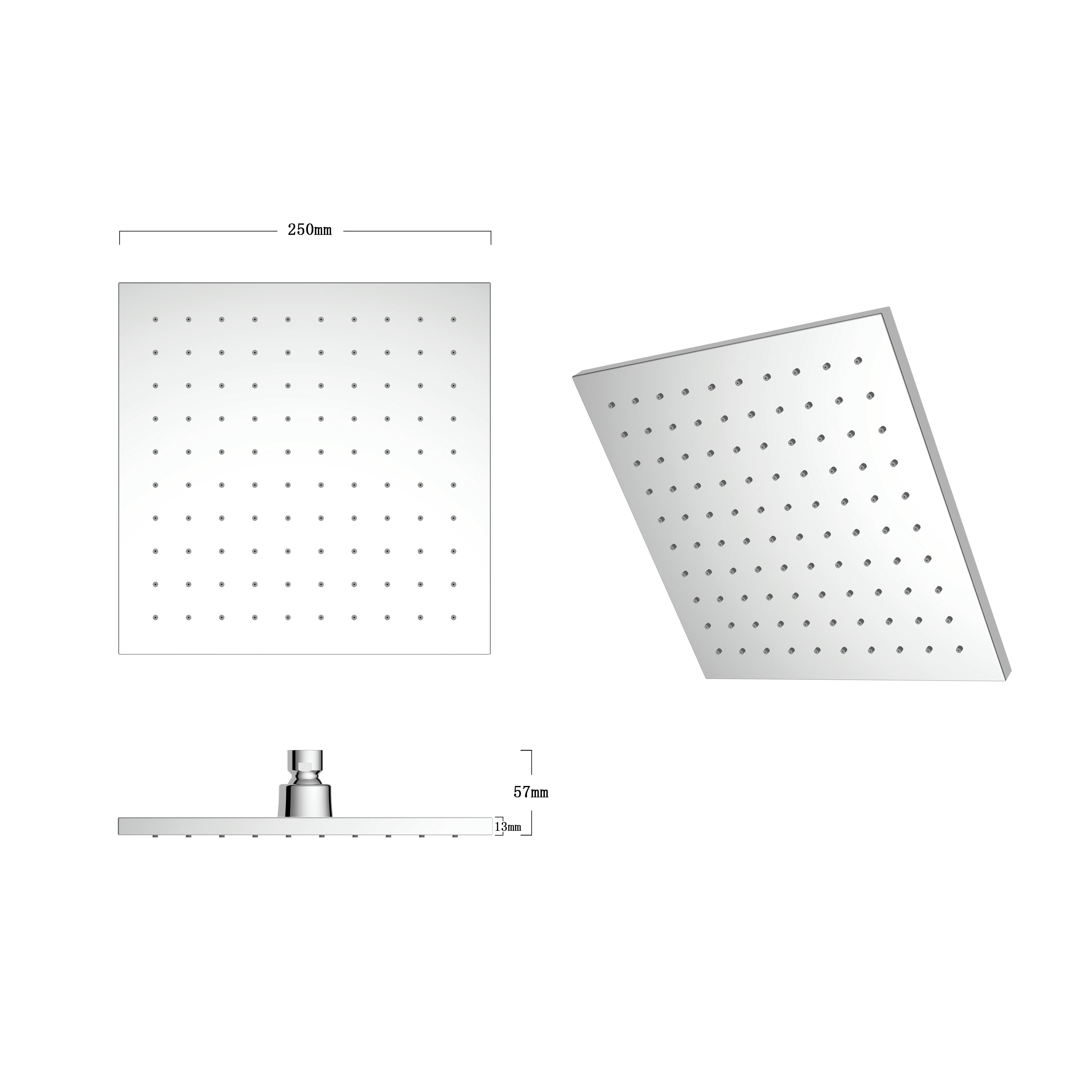 Quadrato, getto a pioggia, attacco universale 1/2 ". Ideale per colonne doccia o per braccio a muro. Il materiale ABS è robusto e leggero