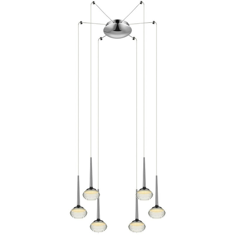 Spring Lighting Soffitto a sospensione a grappolo LED contemporaneo a 6 luci cromato, vetro 3000K | Finitura: Cromata | Materiale: vetro, metallo | Grado di protezione IP: IP20 | Altezza minima: 23 cm | Altezza massima: 310 cm | Diametro paralume: 10 cm | Altezza paralume: 5 cm | Tipo di lampada: LED integrato | N. di lampade: 6 | Lampadina inclusa: Sì - Integrata | Dimmerabile: No | Peso: 4 kg | Potenza (max): 5 W