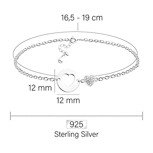 ELEGANTE & SENZA TEMPO - Bracciale d'argento alla moda con ciondolo a cerchio cuore e pietre zirconia - adatto ad ogni occasione ed abbinamento
