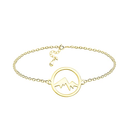 ELEGANTE & SENZA TEMPO - Bracciale alla moda in argento placcato oro con ciondolo a cerchio montagna - adatto ad ogni occasione ed abbinamento
