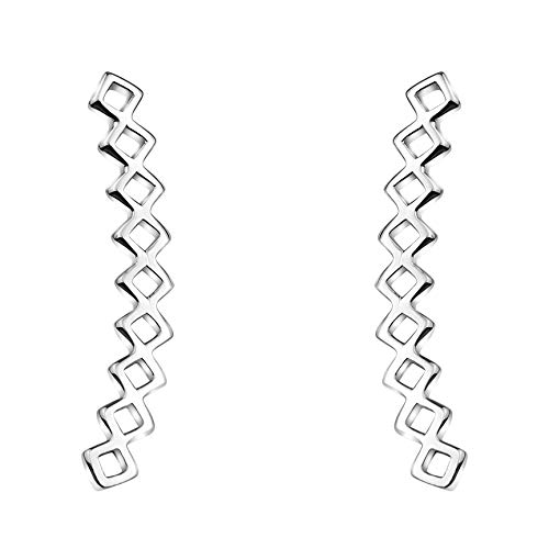 ELEGANTE & SENZA TEMPO - Orrecchini Scalatore alla moda in argento con motivo a quadrati - adatti per ogni occasione e combinazione