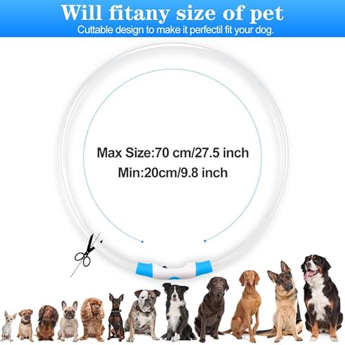 Sofore Collare Luminoso per Cani,Luz de Collare Luminoso Per LED Para la Oscuridad,USB Recargable 3 Modos de Flash Collare Luminoso per Cani Ricaricabile Tamaño Ajustable,Adecuado para Perros,Blu