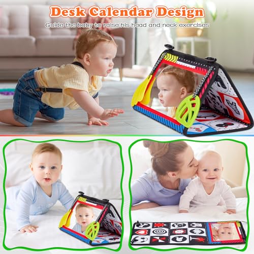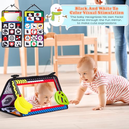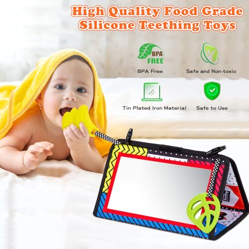 Sofore Giochi Neonato 0-3 Mesi, Specchio Montessori Neonati Giochi Montessori 6 Mesi Libro Sensoriale Neonati Specchio Montessori Regali per Bambini Giocattoli Educativi Interattivi, Lettera
