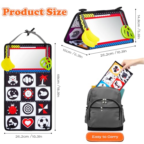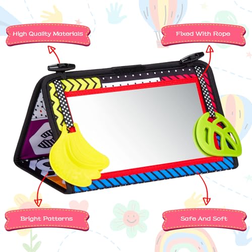 【Specchio di sicurezza per bambini pieghevole】 Il giocattolo sensoriale per bambini è dotato di supporto pieghevole, velcro e fibbie. Il giocattolo dello specchio per bambini può essere piegato, facilitando il trasporto. Il design grafico fronte-retro può attirare l'attenzione del bambino. Lo specchio ha una pellicola protettiva trasparente, strapparla prima dell'uso.