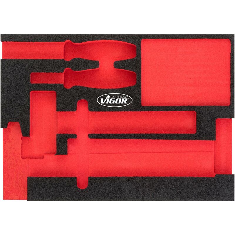 2-component soft foam insert Insert measurement / drawer size: M (282 x 393 x 35 mm) VIGOR 2-Alloggiamenti in espanso morbido per componenti Facile da pulire: sciacquare sotto acqua corrente e asciugare Rapida individuazione degli utensili mancati grazie al vano rosso Tutto al proprio posto per un perfetto ordine Protegge gli utensili grazie ad un posizionamento antiscivolo Ogni utensile ha il suo posto predefinito Resistente a oli e grassi Dimensioni / Lunghezza: 393 mm x 282 mm x 35 mm Altezza 35 Larghezza 282 Lunghezza (cavo) 393 Utilizzo V5085 Dimensioni dell'imballaggio 1