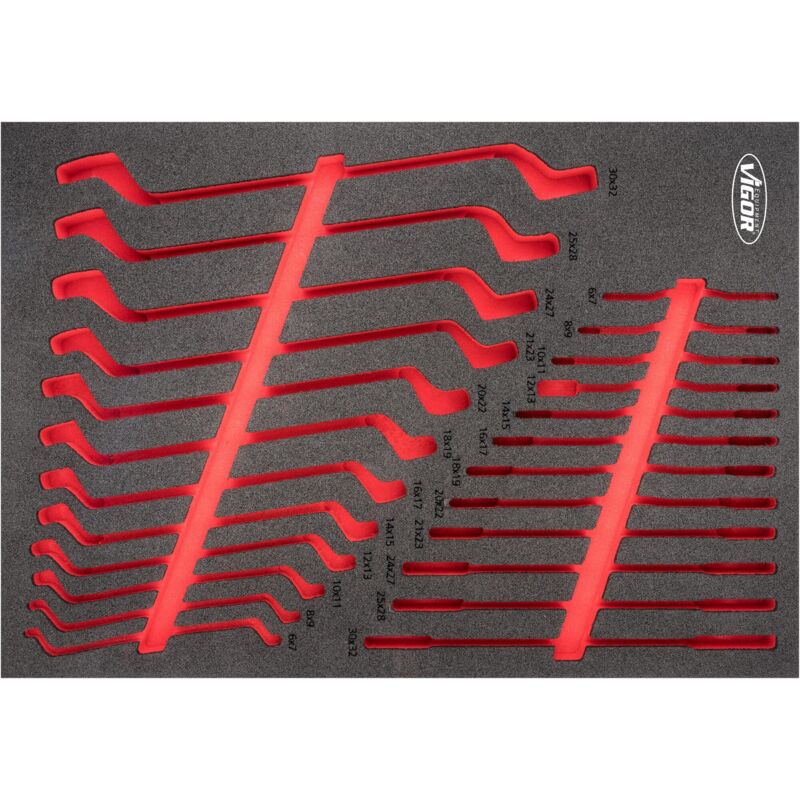 2-component soft foam insert Insert measurement / drawer size: L (563 x 393 x 35 mm) VIGOR 2-Alloggiamenti in espanso morbido per componenti Facile da pulire: sciacquare sotto acqua corrente e asciugare Rapida individuazione degli utensili mancati grazie al vano rosso Tutto al proprio posto per un perfetto ordine Protegge gli utensili grazie ad un posizionamento antiscivolo Ogni utensile ha il suo posto predefinito Resistente a oli e grassi Dimensioni / Lunghezza: 563 mm x 393 mm x 35 mm Altezza 35 Larghezza 393 Lunghezza (cavo) 563 Utilizzo V6808 Dimensioni dell'imballaggio 1