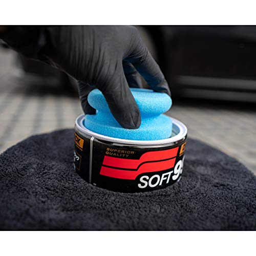 Soft99: Set sigillante per Vernice Scura per Auto Dark & Black Wax, per Vernici per Auto Nere/Scure 300 g + applicatore in Spugna per lucidatura a Mano + Panno in Microfibra 550 gsm 40x40cm