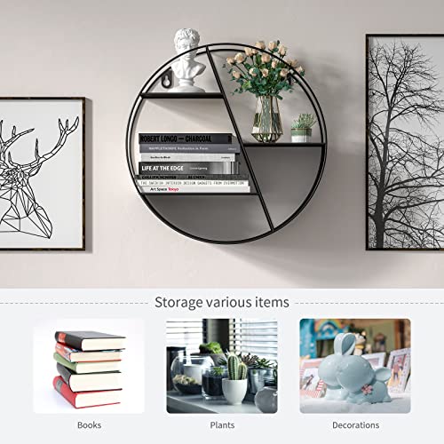 Softeen Scaffale a Muro Metallo, Scaffali Galleggianti da Parete di Ferro Metallico, Mensole Decorative fissate al Muro, Scaffale a Parete per Soggiorno, Camera da Letto, Bagno, 29 (Diametro) x 10 cm