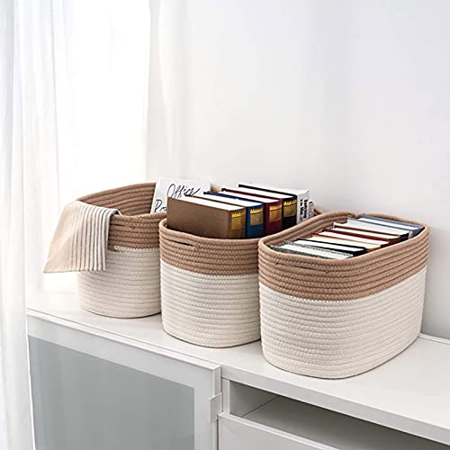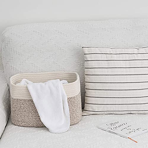 Sogaml Cestino portaoggetti in corda di cotone rettangolare,Cesto in tessuto di corda di cotone per soggiorno per riporre cuscini, giocattoli e libri