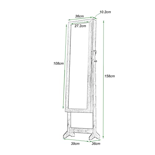 Dimensioni complessive del portagioie: dimensioni dell'armadietto portagioielli di 40 L x 36 W x 158 H cm, si adatta alla camera da letto.