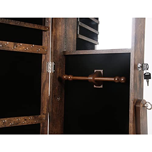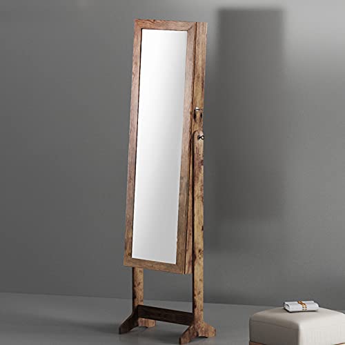 Soges Armadietto portagioie con specchio a lunghezza intera, regolabile ad angolo, richiudibile, autoportante, con 2 specchi in MDF, altezza di 158 cm, colore vintage