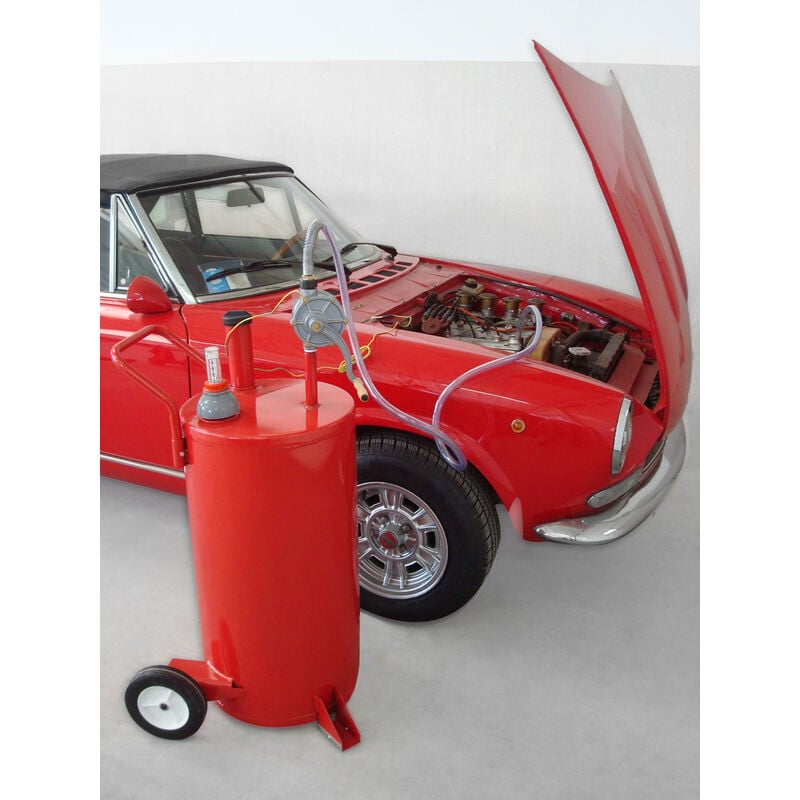 L'aspiratore manuale SOGI SER-95 ha una capacità di 95 litri di serbatoio è ideale per il recupero di oli esausti motore o cambio manuale, automatico: auto, camion, auto d'epoca, una ottima soluzione indispensabile per la tua officina o il tuo garage. La macchina viene realizzata interamente in acciao e verniciata a polvere per una lunga durata nel tempo è inoltre dotata di ruote per lo spostamento in officina o garage, grazie alla pompa manuale si ha la possibilità di aspirazione o scarico olio. La scala graduata cilindrinca posta alla base superiore dell'aspiratore permette la visualizzazione del livello di olio presente nel serbatoio, il tappo presente sulla superficie di testa per un eventuale versamento manuale dell'olio, insieme è fornito il tubo flessibile in gomma trasparente dotato di estremità in acciaio è un morsetto e cavo di massa per messa a terra per la dispersione di un eventuale corrente elettrostatica. Caratteristiche tecniche dell'aspiratore manuale SOGI SER-95