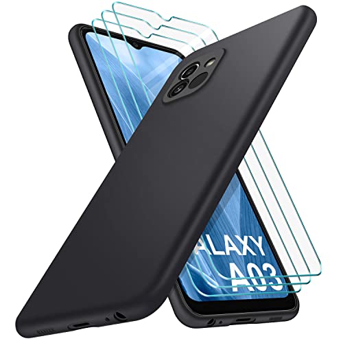 SOGUDE Cover per Samsung Galaxy A03 Custodia + [3 Pezzi] Pellicola Vetro Temperato, Morbido Sottile Silicone TPU Case Samsung Galaxy A03 Cover Protezione Anti-Caduta, Nero