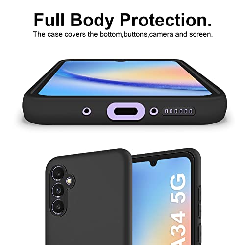 SOGUDE Cover per Samsung Galaxy A34 5G Cover + [3 Pezzi] Pellicola Vetro Temperato, TPU Silicone Samsung Galaxy A34 5G Protezione Anti-Caduta Custodia, Nero