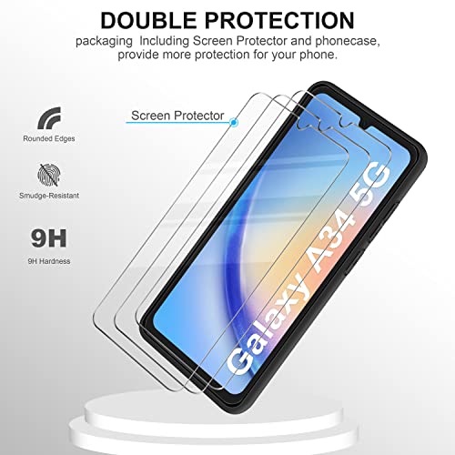 [Compatible with Samsung Galaxy A34 5G] Cover con 3 Pezzi Pellicola in Vetro Temperato Compatibile con Samsung Galaxy A34 5G, offerta Full Body Protezione per tuo telefono.