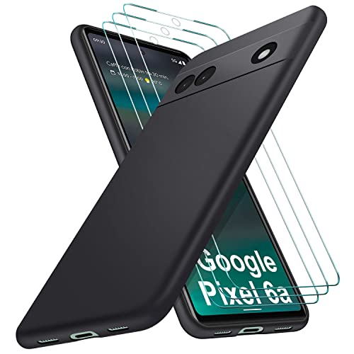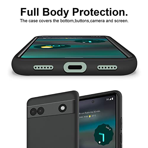 SOGUDE Custodia per Google Pixel 6A con 3 pellicole protettive, antigraffio, Google Pixel 6A, in silicone TPU, colore: Nero