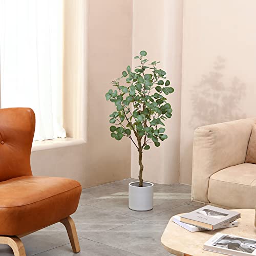 SOGUYI 120cm Piante Finte da Interno Grandi, Eucalipto Artificiale con Foglie di Dollaro d'Argento Verde, Pianta Artificiale con Vaso Plastica per Casa Ufficio Balconi Decorazioni(1 Pezzi)