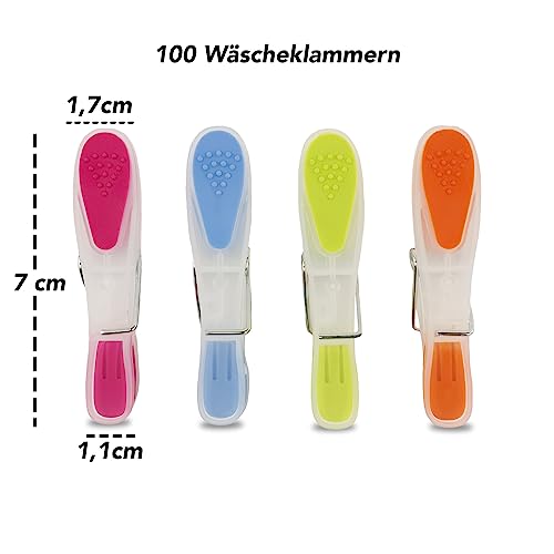 SOHFA - Sacchetto per mollette da bucato con 25/50 mollette in plastica resistente e moschettone., 100 Wäscheklammern