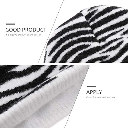 SOIMISS Berretti in Maglia Sfocata con Motivo Zebrato Cappelli Invernali Caldi con Berretto Soffici Cappellini con Teschio di Lana