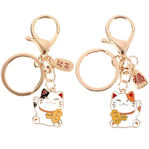 SOIMISS 2 Pezzi Portachiavi Gatto Fortunato Stile Giapponese Feng Shui Maneki Neko Portachiavi Fu Charms Portachiavi Borsa Borsa Ciondolo Regalo Gioielli per Natale Regalo di Capodanno