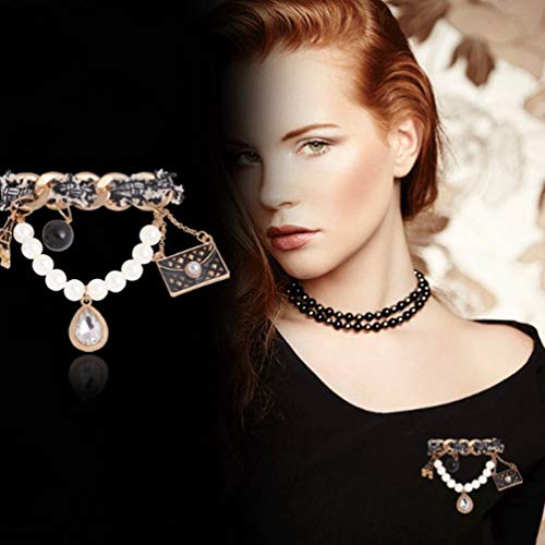 SOIMISS Spilla con Nappa Spilla con Perle per Sciarpa Spille con Catena Dorata Motivi con Perle Spilla con Cardigan per Donna Sciarpa Maglione da Donna