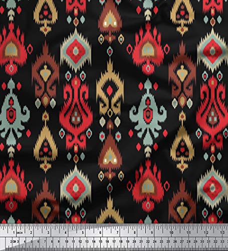 Soimoi Designer 44 Pollici di Larghezza Puro Tessuto di Seta Ikat Stampato 20 gsm al Metro - Nero