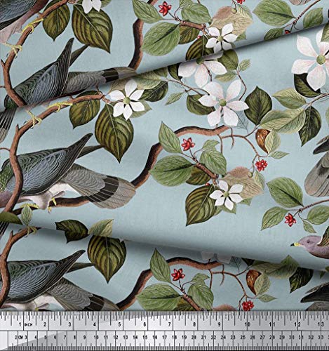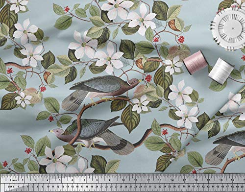 Soimoi Uccello E con Stampa Floreale 58 Pollici di Larghezza Voile di Cotone Tessuto Deocrative dal contatore-Baby Blue