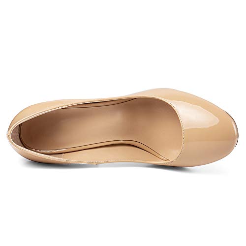 Soireelady - Scarpe da Donna - Tacco a Blocco - 10CM - Scarpe col Tacco Brevetto Beige EU35