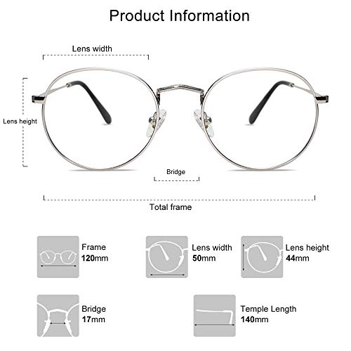 SOJOS Occhiali Anti Luce Blu Rotondi Vintage Occhiali da Vista per Donna SJ5024 (C5 Argento Telaio/Lente anti-blu)