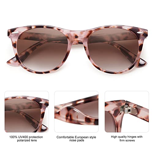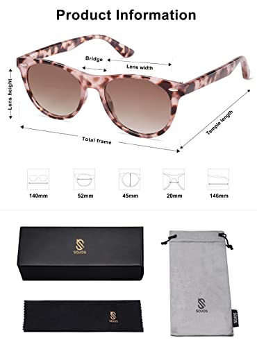 SOJOS Occhiali da Sole Polarizzate UV400 Piccola Retrò Vintage CELEB SJ2076 (C9 Tartaruga Rosa Telaio/Marrone Chiaro Lente Gradiente)