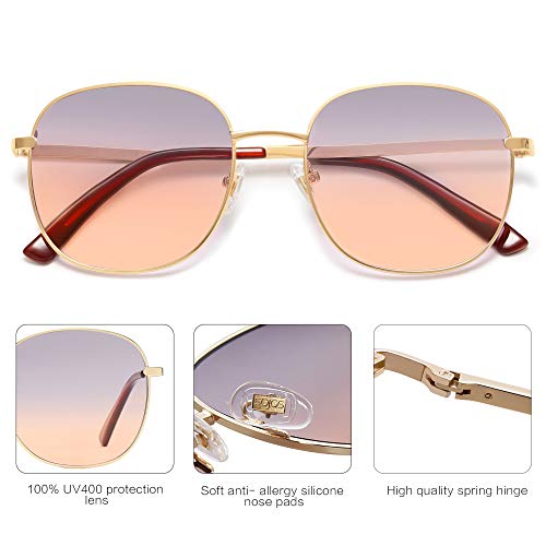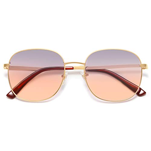 SOJOS Occhiali da Sole Quadrati Rotondi Lente a Specchio Piatta Montatura in Metallo SJ1137 con Oro Telaio/Grigio Graduate Arancio Lente